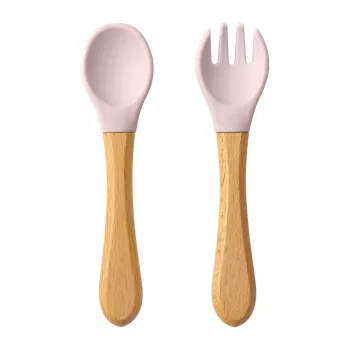 Silicone Baby Spoon and Fork Set with Wooden Handle