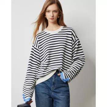 Women's Striped Knitted Sweater - Autumn Long Sleeve Pullover